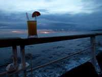 The ship bought a stack of live lobsters, which we had for dinner that night. There was a Remembrance Day service on board, it being November 11th, and as the sun set there was time to enjoy a sundowner.