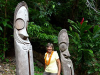 After the dance, we made our way along the beach to the main village where we got to spend to wander through the village houses. There were some beautiful artefacts for sale with some very delicate carvings: heads, statues and even wooden hanging fruit bats.