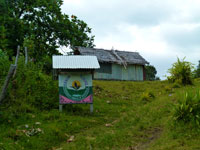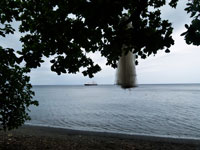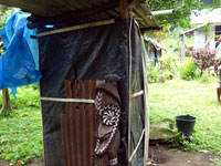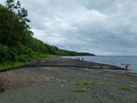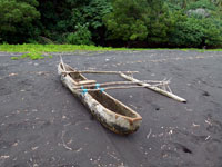 The walk along the black sand beach led to the village. And yes, they did carve the wodden goods for sale, and did not by them from the Chinese. The sacred totem that was the seal of office of the chief, was interetingly used to prop closed the door of his outside toilet. Lighhting was by the simple, but effective, means of small solat powered lights, that were charged up during the day. Canoes were of the simple dugout variety. The local school had up the motto - "Prosperity grows in Education"