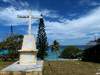 The Catholic missionaries, who came to spread the Gospel to Lifou Island, landed at Easo in April 1858. In the Drehu language, “Easo” means “smoking fire”: from 1860 till 1870, whalers lit fires there to dismember the whales and melt their fat down to make oil. In 1858, on the promontory overlooking Santal and Jinek Bays, the missionaries built a little chapel, Notre-Dame de Lourdes, which is celebrated each year on 8 December.