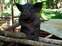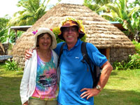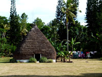 After this presentation we started our Lifou tour. This was a long 4 or 5 hour trip, which could have been accomplished more easily in half an hour on a shorter journey. We drove miles to see a vanilla plantation, which turned out to be a touristy bit of jungle where were harrassed and shouted at by local guides, and finally given a minute quantity of cold vanilla coffee in paper cups. We drove on, and stopped at a non-descript view of some cliffs, but were not given time to walk down to the sea. Then we drove to an old traditional Melanesian Village named Hnathalo, the island is full of such traditional huts. Our last stop was the white Luecila beach with white coral sand, where we were plonked for 45 minutes with nothing to do (no swimming costumes or towels with us)- the most memorable thing being the beach house with a plastic straw roof (photo botton left - I jest not, the roof is plastic). I carry away a memory of New Caledonia as being a dirty island with lots of litter, and very few redeeming features - the pig (photo bottom row) was perhaps the nicest thing we saw).