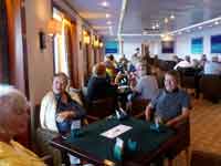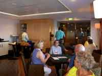 Although Regent claim that you can eat in the two specialty restaurants, Signatures and Prime 7, you can only get one booking in each during a cruise. Hence the rather degrading need to obtain extra bookings and wheedling with the crew responsible for the granting of these extra bookings. We ended up on the 14 nights with 3 in Signatures, 2 in Prime 7 and the rest in Siete Mar. Neither of us fancied the main restaurant, which was in the centre of the ship and had the fore and aft walkways running through it