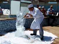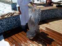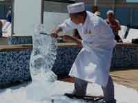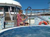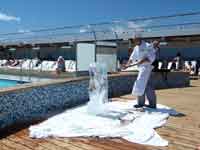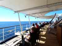 There were obvious mutterings at the way Regent tried to underplay the missing of St Helena, with this one announcement. The cruise director thought we should soon get over any'slight disappointment and get on with having fun on his cruise: how many people had , like us, booked the cruise solely because it was visiting St. Helena? 2 days later, the man with the grandiose title of "Cruise Director" (but in reality just the Entertainments Manager - similar to a Butlins Red Coat) was forced to come onto closed circuit TV and give a few more details. Including the "fact" that the ship burnt $25,000 a day more in fuel at top speed, and that an extra days berthing in Rio would be $60,000 (I have no idea how true these figures are). The announcement failed to mention that the man with the heart attack was not a passenger, but one of the crew, a jewellery concessionaire on board. And I don't think these figures of his are correct, and I think the sum mentioned is the total cost per day of running the ship, not the extra required to increase speed to 21 kts.