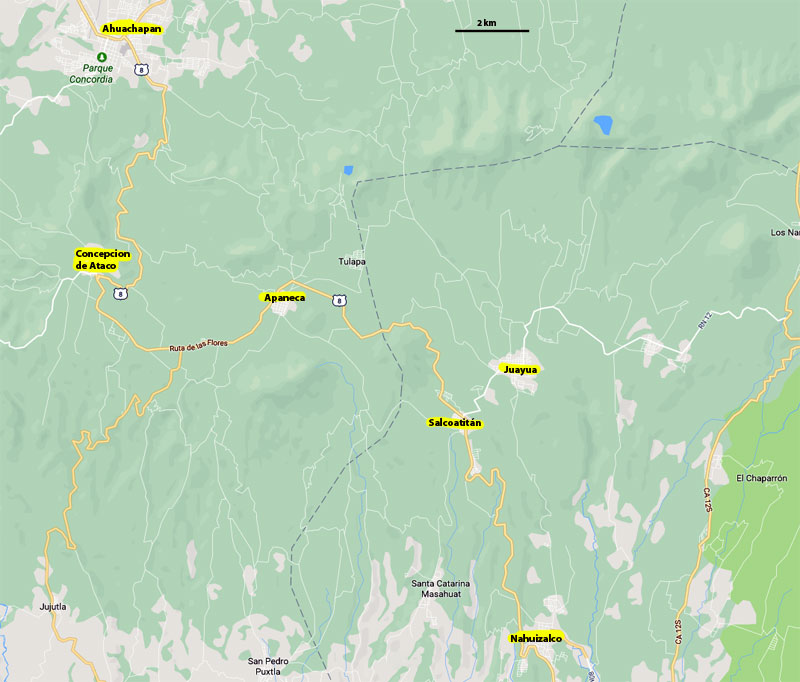Concepción de Ataco is a town within the Ahuachapán Department, El Salvador. This is where we stayed. It has a population of 18,000 inhabitants. One of the most famous handicraft shops that has treadle looms is Diconte & Axul. Established in an old house, dating from 1910, near the centre of town, : however we never did find it. .