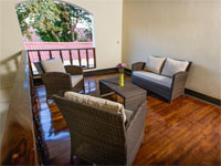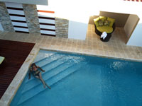 We had the upstairs King Double, with its own private terrace. And that was very agreeable and one could sit on the balcony and look down on the small, modern swimming pool.