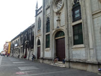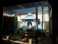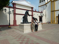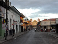After Granada, which is better preserved, León has the best colonial architecture in Nicaragua. It is a university town that stubbornly remains somewhat pro-Sandinista. During the 1979 revolution, the Sandinistas took over León in violent street by street fighting. Somoza then had the city bombed. The National Guard took León back over, again in street by street fighting, but this time less intense since the Sandinistas melted away. Finally, the Sandinistas took León back over and held it until the Somoza government fell. You can still see bullet marks on some buildings. Also, there is a shell of a church on the road out of town that was destroyed during the bombing. Across the street from this church is the Museo de las Mytos y Leyendas Tradiciones (Museum of Myths and Legends), which prominently displays a statute of a Sandinista guerrilla holding a handmade bomb.