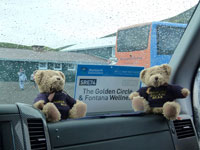 From LGW to LHR There was a bit of a to-do on the National Express bus, when a large plastic panel in the room fell down on Chris's head. We informed the driver at the next stop (he should have seen it happen anyway) but the said surly driver wa unconcerned, saying his job was to drive the bus, and was not responsible for the maintenance thereof.