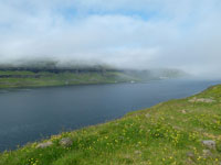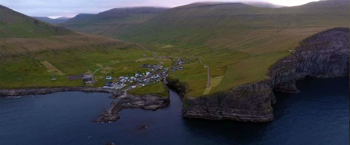 The village was first mentioned in 1584, but it seems to have existed long before then. It has long subsisted on fishing and selling dried and salted fish. At one time as many as 13 fishing boats sailed from Gjógv. Its population has seen a sharp decline in the past 60 years or so. In 1950 the headcount still stood at 210. A factory producing prefabricated concrete elements was founded in the village in 1982. It employs 6 people and is the only one of its kind in the islands. Other branches of industry are represented by the village's fish farm and guest house / hostel and campsite.