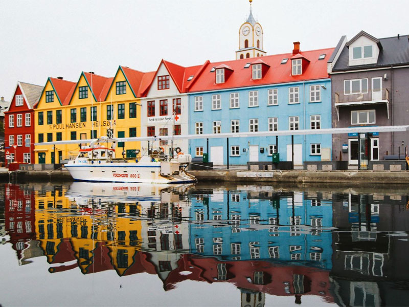 Tórshavn, on Streymoy Island, is the capital city of the Faroe Islands. It is known for its old town, Tinganes, crammed with wooden turf-roofed houses on a small peninsula. Nearby is Tórshavn Cathedral, rebuilt in the 19th century. Local boutiques dot the main shopping strip, Niels Finsens gøta.