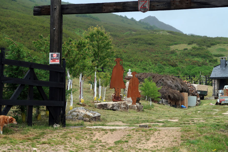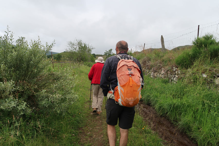 The walk was a circular one which took us across high cattle pastures, and a finca. The finca was a bit strange as they had two quite expensive statues of Guardia Civile in their grounds. We stopped near the finca for tapas, and it spitted rain on and off. The last kilometre or so was on an used tack, knee high with wet grass which was somewhat unpleasant