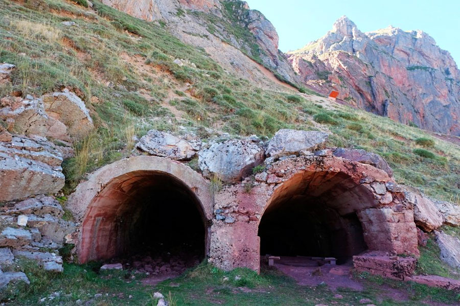 An iron mine operated here from 1805 to 1978. And the path is red from the iron ore in the ground. The mine entrances have been closed off, but are visible.