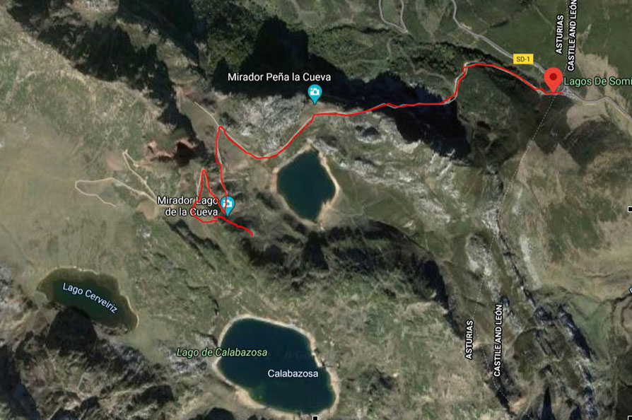 It was a very pleasant ride up the entire length of the Saliencia Valley to the parking at the top. There were a number of walks to the lakes, but we took one of the shorter, as there was a step up in length to get to the lake after the one we stopped at. Again perfect conditions for walking. We had our tapas on a spot overlooking Lake Calabazosa, before re-tracing our steps back to the car