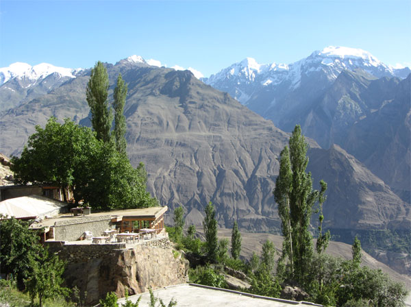 A two hours' testing yet rewarding walk (or an equally dramatic 30 minute drive) from the village of Karimabad, the Eagle's Nest sits at 2850 metres above sea level with fabulous views of the Hunza Valley, 500 metres below. Traditionally decorated with wood and stone, the hotel meets modern standards. The restaurant serves meals prepared with fresh local ingredients and all water is from a fresh spring and safe to drink. Treks in the area are varied and all have magnificent views, and a visit to the Ultar glacier is certainly a highlight. From a view point just above the hotel you can see six 7,000 metre peaks!
