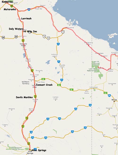Tennant Creek to Alice Springs about 500km