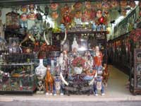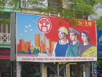 | Communist era propaganda | Bicycles carry everything | Shops sell everything .. | ..from bamboo ladders .. | .. to ceramics. |