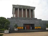 | The one pillar temple | And Ho Chi Minh's Mausoleum. The museum to go with it, is dedicated to Ho Chi Minh and Vietnam's revolutionary struggle against foreign powers and was constructed in the 1990s. The whole area occupies a vast area in central Hanoi. The mausoleum was inspired by Lenin's Mausoleum in Moscow but incorporates distinct Vietnamese architectural elements. The exterior is made of gray granite, while the interior is gray, black, and red polished stone. In his will, Ho Chi Minh stated his wish to be cremated and to have his ashes scattered in the hills of north, central, and southern Vietnam. He said that he preferred cremation because it would be "more hygienic than burial and would also save land for agricultural purposes." The mausoleum was built in spite of his wishes. | |||