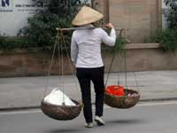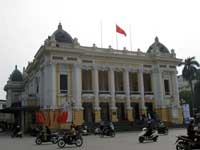 | The laden ladies are everywhere. | Hanoi Opera House. | National Museum of Revolution | Public building on the lake. | One of many flower shops. |