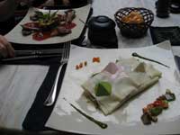 | Green Tangerine Restaurant which had an interior colonial courtyard, where we enjoyed a modern "fusion" lunch for a very reasonable 500,000 Dong (£20). We went here for lunch, as the previous night we had not booked and were unable to get a table. However this proved to be a bonus. The Green Tangerine offers a fixed price lunch menu, so you can enjoy a very reasonable lunch (yes the wine is expensive, but you do not have to drink wine, stick to beer) The courtyard setting is very "old French Hanoi" and very atmospheric, the fusion cooking is well presented, and the service excellent. So you can enjoy lunch at less than half the price of dinner | ||||