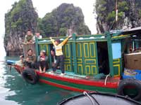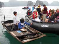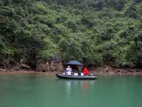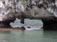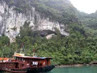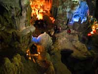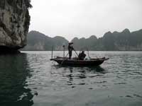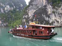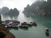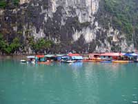 | And on to the Hang Đầu Gỗ (Wooden stakes cave) which is the largest grotto in the Hạ Long area. French tourists visited in the late 19th century, and named the cave Grotte des Merveilles. Its three large chambers contain large numerous stalactites and stalagmites (as well as 19th century French graffiti). There are two bigger islands, Tuần Châu and Cat Ba, that have permanent inhabitants. There are a number of beautiful beaches on the smaller islands. | Around 1,600 people live in Hạ Long Bay in four fishing villages. They live on floating houses and ply the shallow waters for fish and shellfish. Many of the islands have acquired their names as a result of interpretation of their unusual shapes. Such names include Voi Islet (elephant), Ga Choi Islet (fighting cock), and Mai Nha (roof). | |||