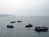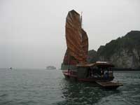 | One comes across the locals .. | ..fishing everywhere. And there... | ..is the occasional genuine old .. | ..junk in full sail. We then headed | into one of the interior lagoons .. |