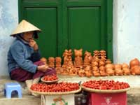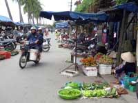 | The market in the town was a genuine local market with masses of colourful food on display and many colourful vendors in the ubiquitous coolie hats | ||||