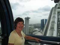 One of the problems in getting around by air these days is having to use hubs and catching connection flights. We had to leave the Orion at 9am, but were not flying out of Singapore till 11 at night. So there was a day to "kill" in Singapore. This was solved quite agreeably by buying a couple of tickers on the "hop on, hop off" bus, which took us to the "Singapore Eye", the Botanical Gardens and Chinatown, as well as giving us an overall ride round the city