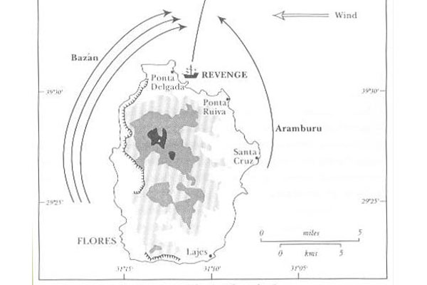 In 1591, Grenville died at the battle of Flores fighting against an overwhelmingly larger Spanish fleet near the Azores.