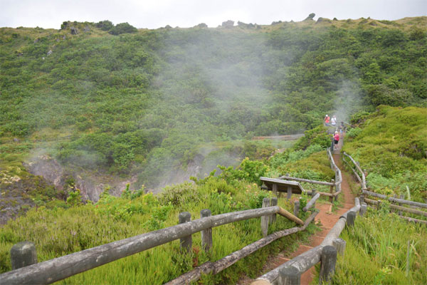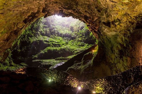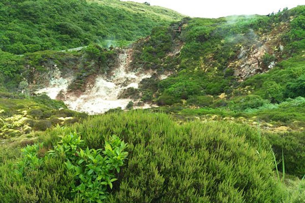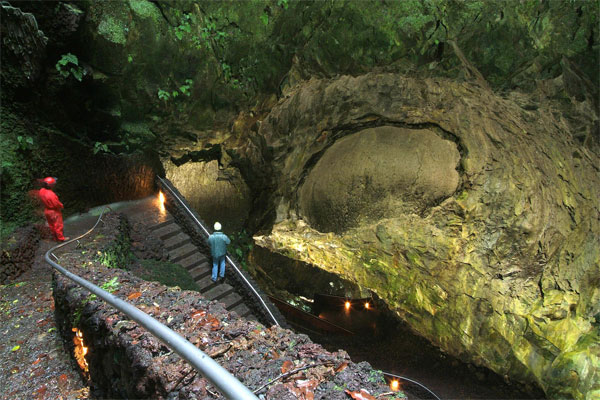 Step into the incredible geological wonders of the island of Terceira. Visit an ancient volcanic vent located at the very heart of the island on this enlightening half-day (three-hour) adventure. Embark from the pier and board your coach for the 30-minute drive to Algar do Carvão, which means the "Cavern of Coal," so named because of the jet-black lava that formed it. Notice the rich tapestry of flora that covers the mouth of the cone structure. Be mesmerized as your guide leads your descent of the steps down into the volcanic cavern that is home to several invertebrate species. Discover the beautiful clear lake here. Climb into your glass bottom boat to explore the surrounding wondrous stalagmites and stalactites. After visiting the cave, reboard your coach for the 10-minute drive to the sulphur fumaroles of Furnas do Enxofre located almost in the geographic center of the island, 600 meters above sea level. Enjoy a gentle walk around the fumarole on a wooden trail and take in the beautiful scenery that surrounds you. Return to your coach for the 45-minute drive back to the pier