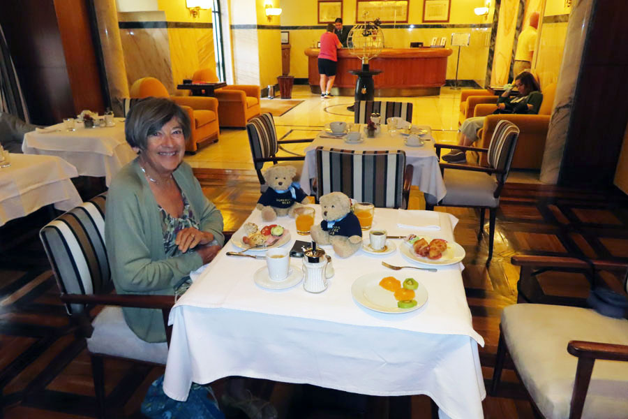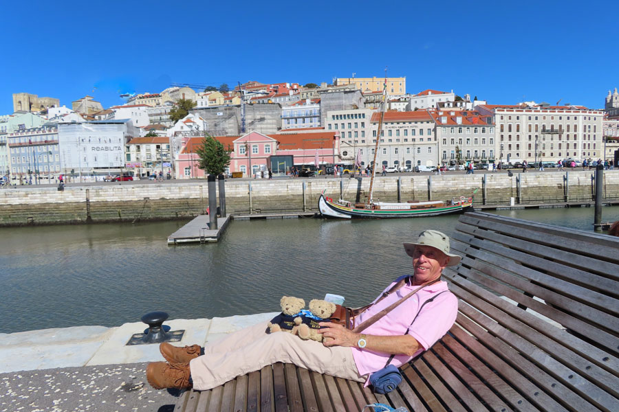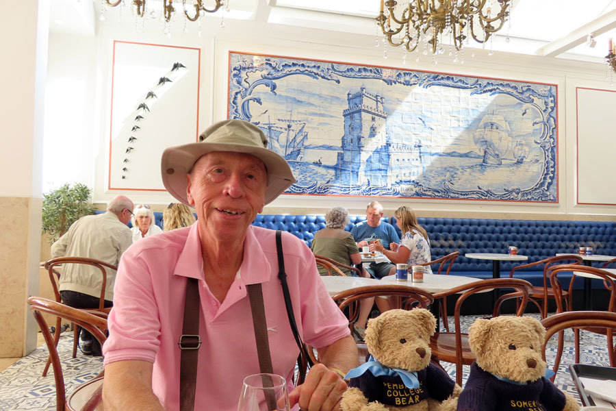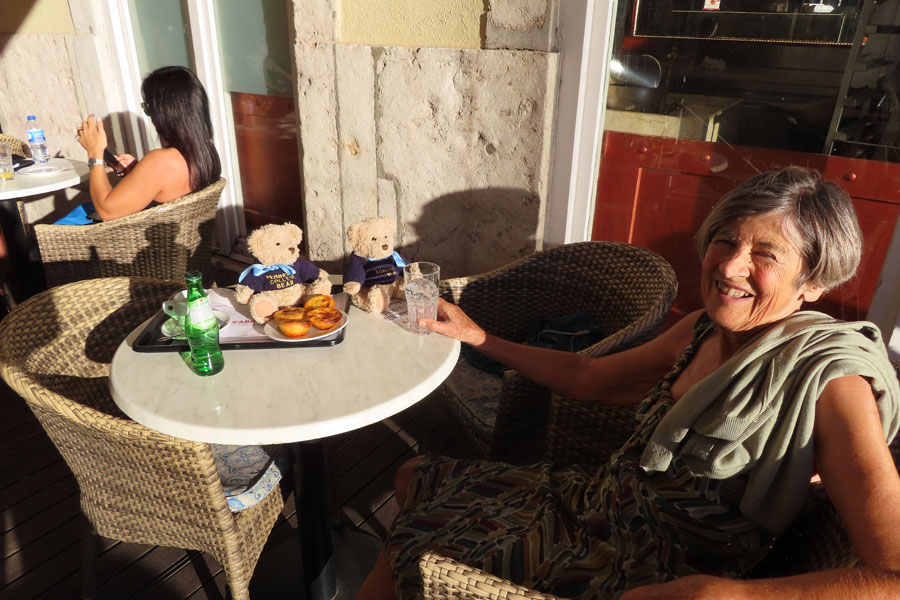 After breakfast the next day we checked out of the hotel and left, our luggage there. We had a walk down to the front in Lisbon , and along the river until we found the Silver Cloud. We regained dour energy via a stop at the sea for a pasteis that the boys nicked at breakfast