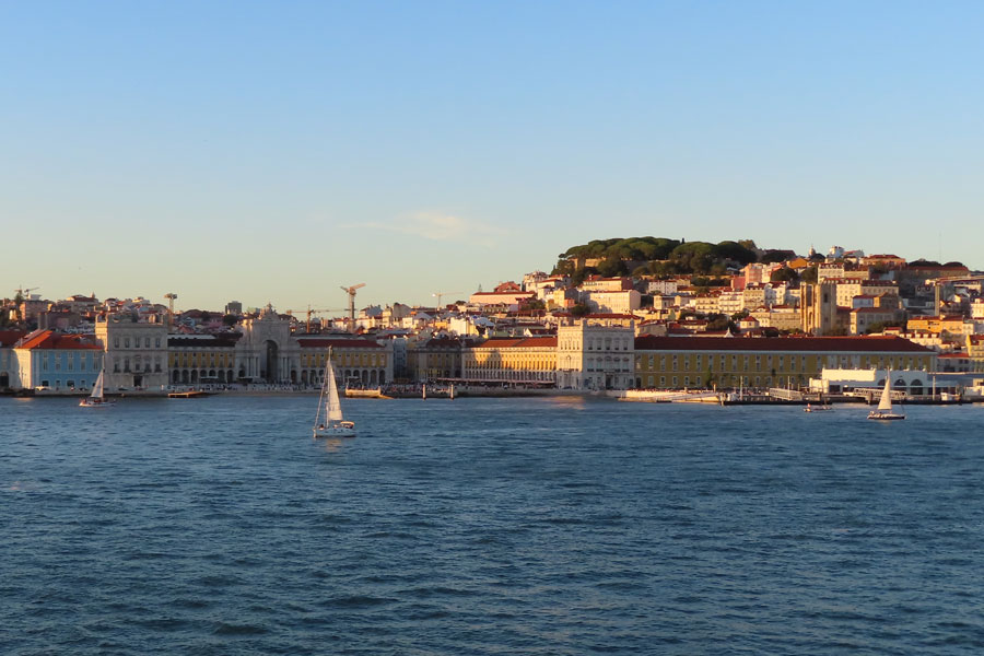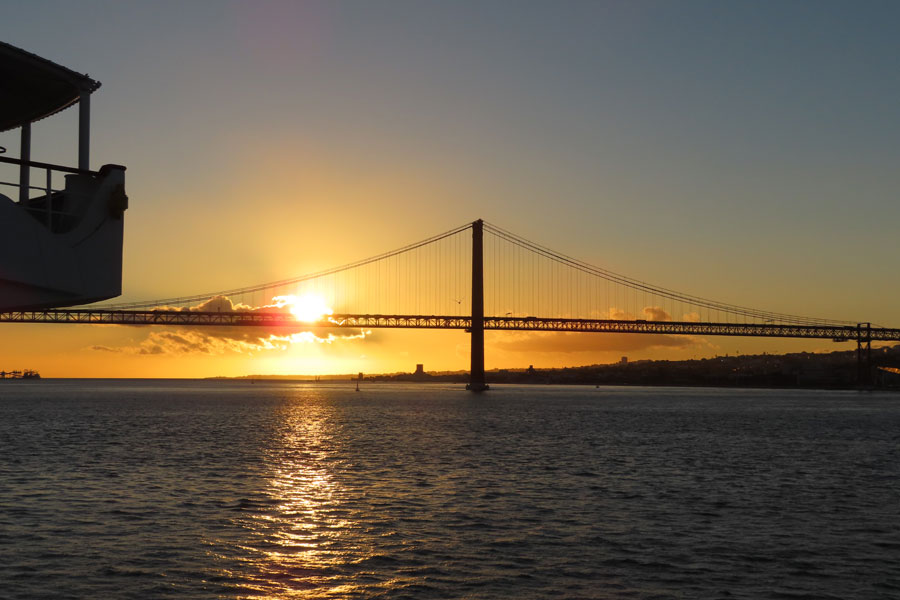 It was a dramatic sail out from Lisbon, past the riverside memorials to past Portugese explorers and under the modern suspension bridge