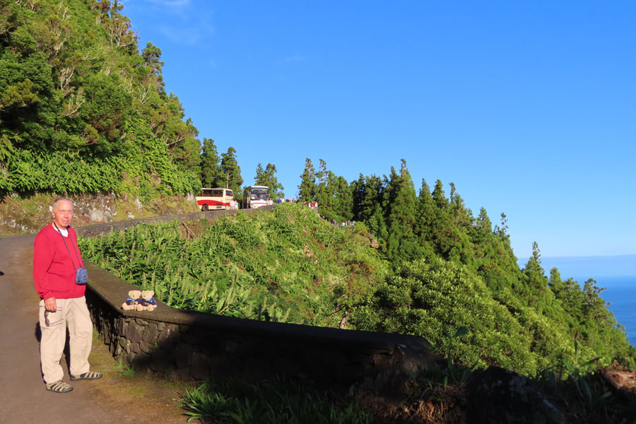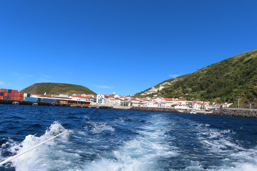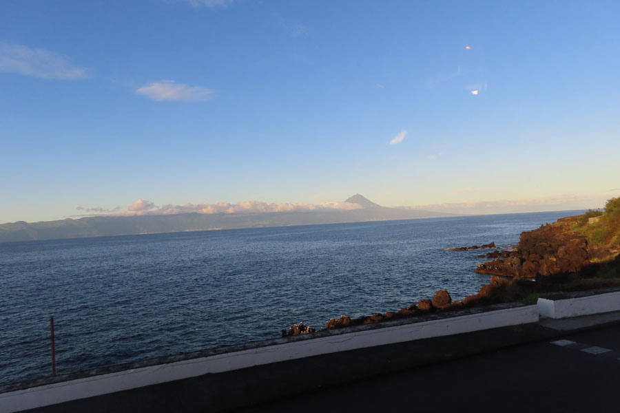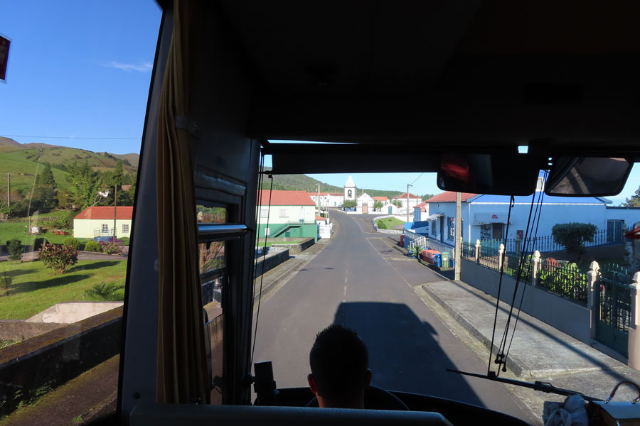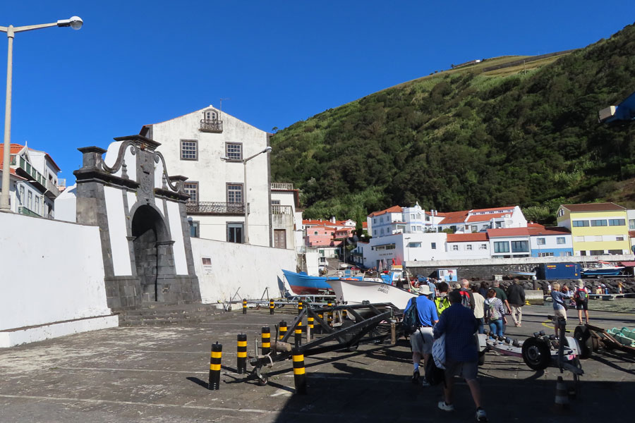 We had an early start with a zodiac transfer to Calheta, the second town of the island of San Jorge. From there was an island drive of three hours. The clear blue sky and strong sunshine was a complete contrast to the previous day. The island was steep sided, with little flat land by the sea. What land there was, called fajas, was used for growing vegetables and vines. A fajã is a Portuguese term designating geological platform, generally located by the sea, constructed from landslides or lava flows, which are distinct features of the islands of the Azores and Madeira, as well as of the Canary Islands (the equivalent term in Spanish is fajana).