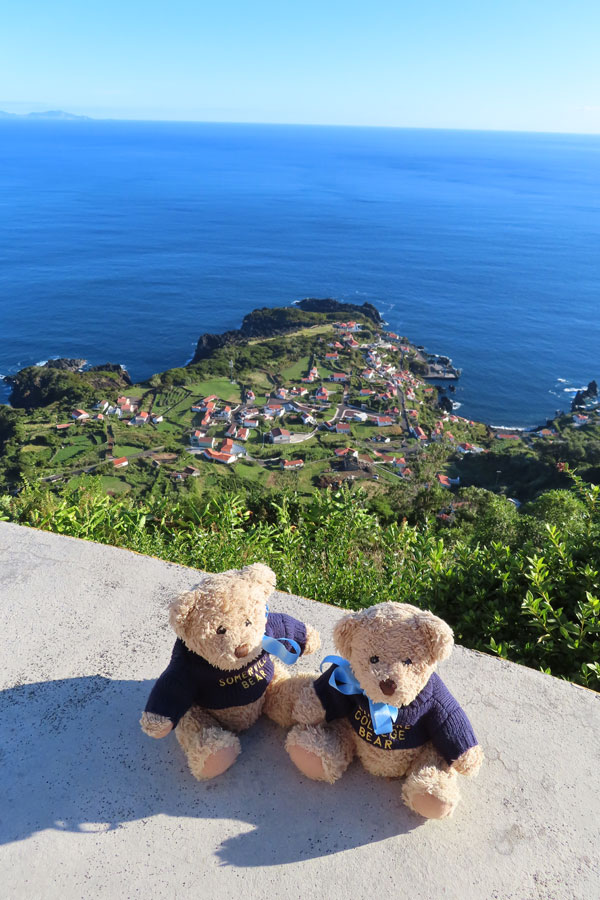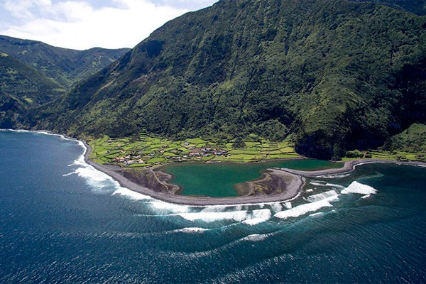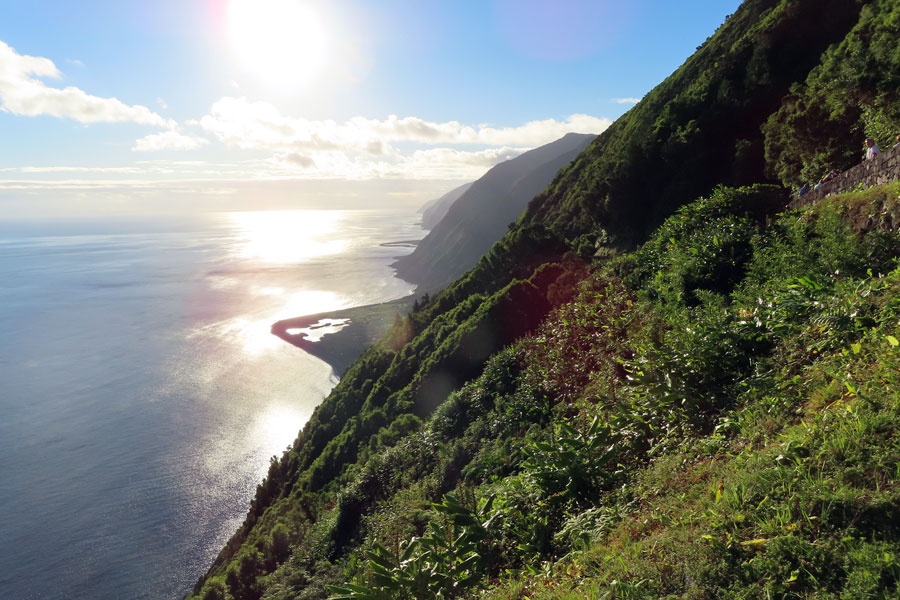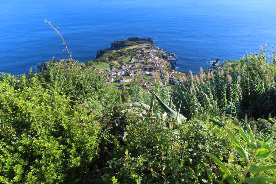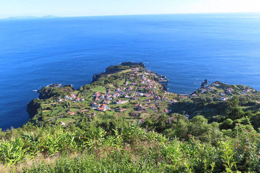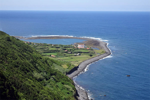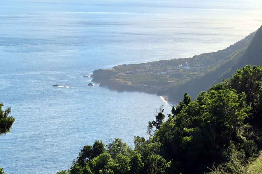 A ‘giant long sea monster’ is how the island of São Jorge has been described when viewed from an approaching ship. Like all Azores islands, São Jorge is volcanic in origin, but it is not the typical volcanic cone shape. It is an elongated narrow string of volcanic peaks joined by a high plateau. Half the island is above 300 metres elevation. A big eruption on the island in 1808 produced fresh lava. Dotted at sea level around the island are fajãs, small flatlands formed by lava flows or landslides. No-one lived on the islands until the Portuguese arrived in the 1430s. The Portuguese were joined later by Flemish, Italians, British, and Breton settlers.