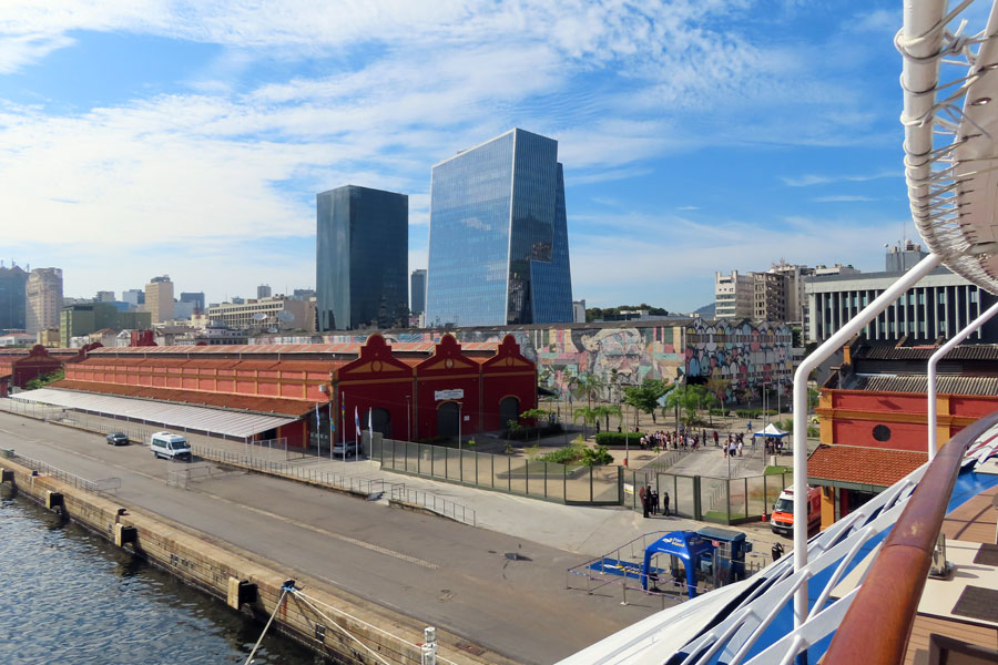 We arrive at 18.00. The ship leaves at 20.00 the next day. We had a six hour transit tour of the city called Art Deco and Coffee tour. About 30 of us walked from the terminal with our Italian guide looking at street art and graffiti. Went past the museum of the Future which we had visited in 2016. After that concentrated on Art Deco buildings, the phrase originating in 1926, and saw many good examples. Also saw examples of the earlier established Art Nouveau, covering natural, non geometrical, shapes.