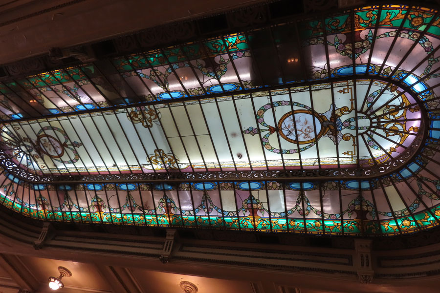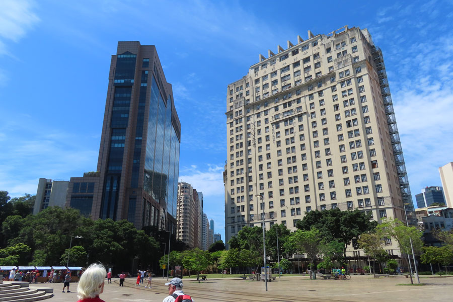 Our afternoon tea was taken at Confeiteria Colombo in the centre of Rio. It was recently chosen as one of the 10 most beautiful cafes in the world. It was founded in 1894 by Portuguese immigrants Joaquim Borges de Meireles and Manuel José Lebrão. Its architecture and atmosphere allow one to have an idea of what the Belle Époque would have been like in Rio . Between 1912 and 1918 the rooms inside the confectionery were renovated, with an Art Nouveau touch, with huge glass mirrors brought from Antwerp, embellished by elegant friezes carved in rosewood. The wooden furniture inside was sculpted at the same time by the craftsman Antônio Borsoi. In 1922 its facilities were expanded with the construction of a second floor, with a tea room. An opening in the ceiling on the ground floor allows you to see the skylight of the tea room, decorated with beautiful stained glass.