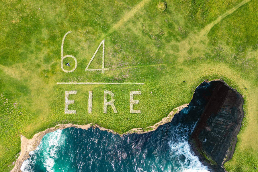 The marking "EIRE 64" was one of 83 Éire signs were dotted around the coast in WW2 to warn bombers they were flying over a neutral country. Fewer than 30 remain intact, with just a small handful in a restored or visible condition.