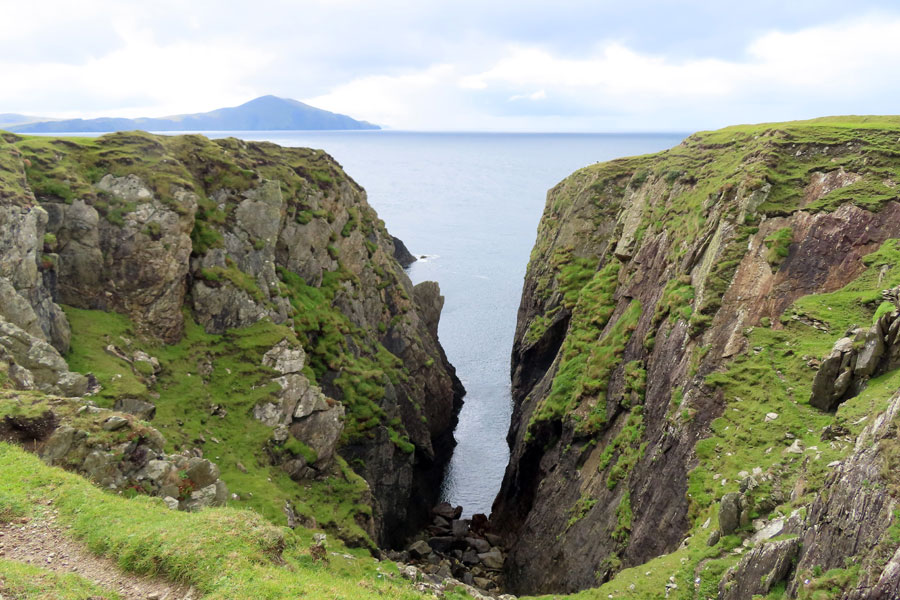 'Poll na Seantainne' is a spectacular blow-hole with subterranean channel to the sea. It is well known in the local history because during the 1798 rebellion 25 men, Irishmen and French soldiers, lost their lives taking refuge on the ledge at the bottom, but unfortunately tide came in before ladders could be replaced.