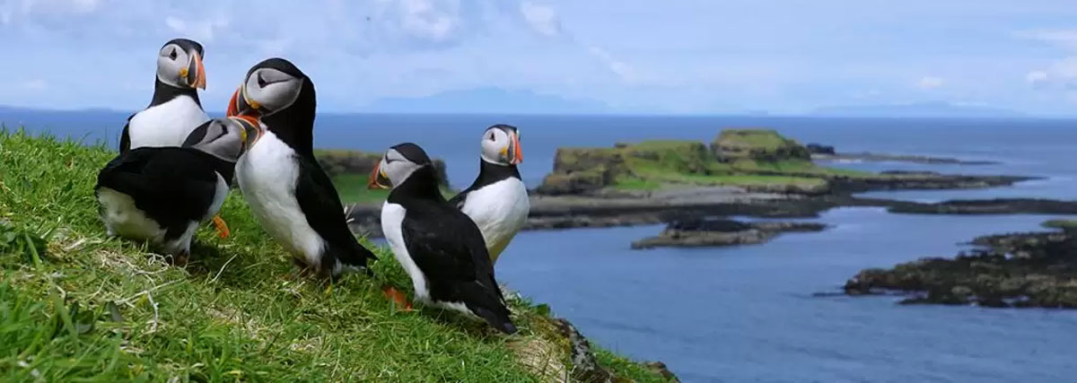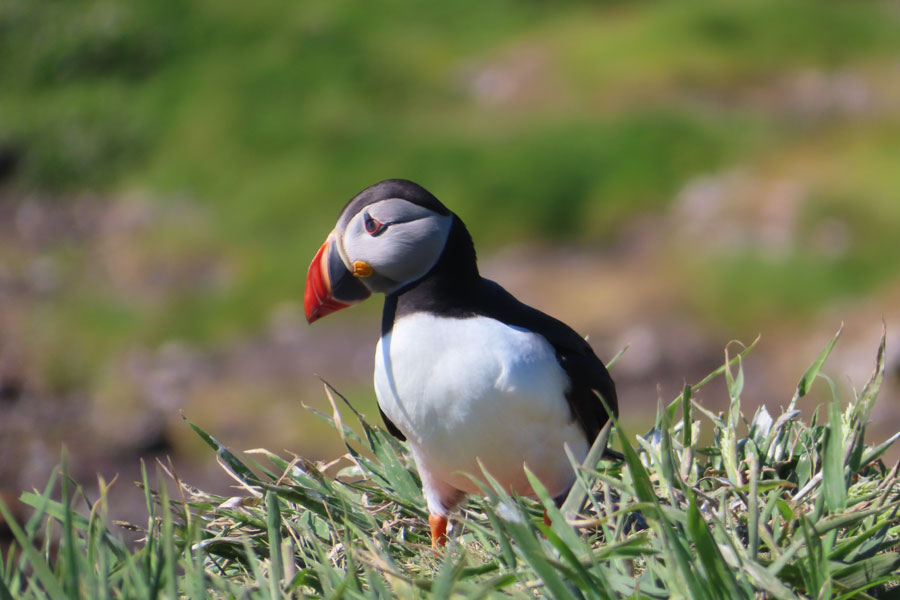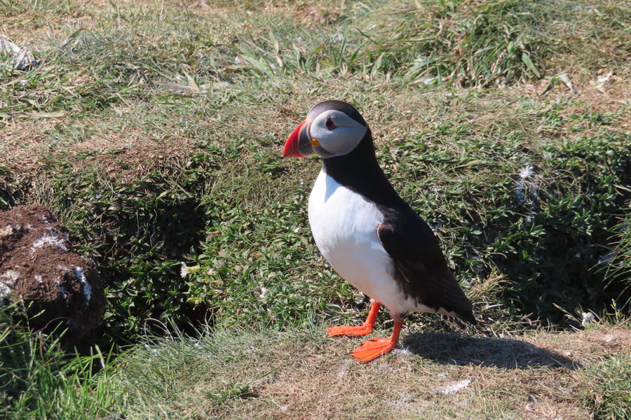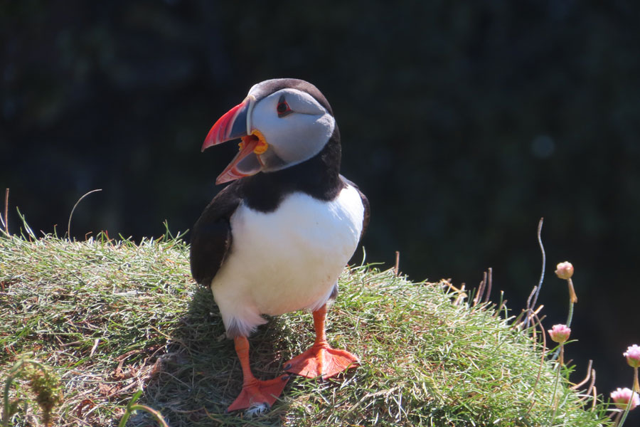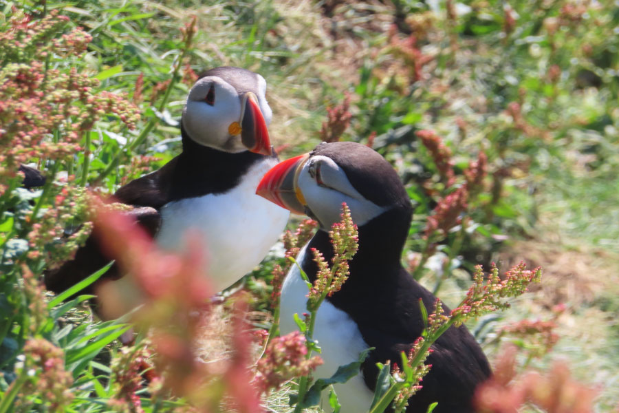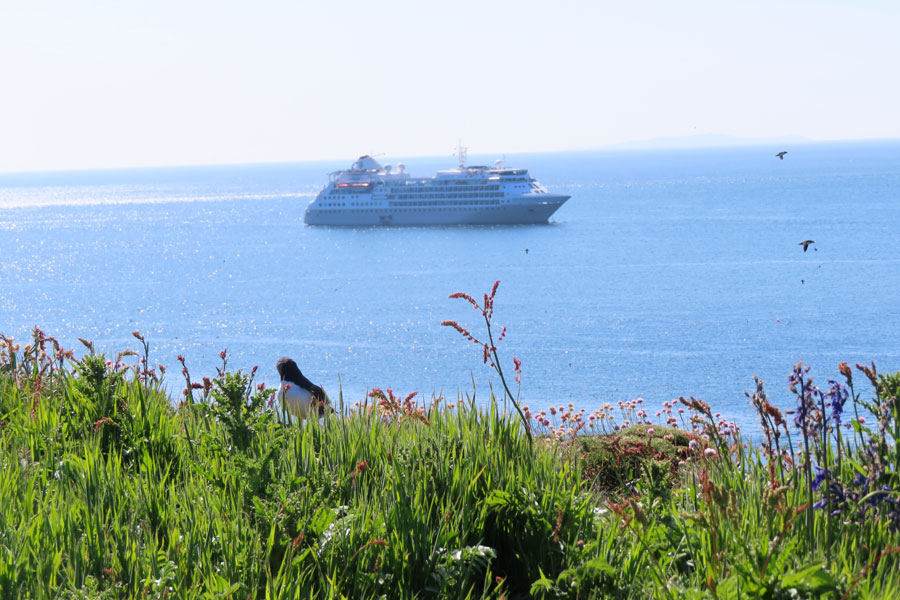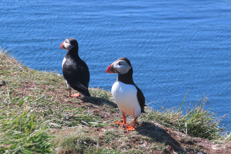 Abundant plant life and exotic birdlife are now the main inhabitants of the area. Fortunate visitors view the magnificent array of birds, especially the great puffins that breed on the islands plateau. One can sit within just a few feet away without disturbing the avian ambassador’s peace. The 81 hectare island is home to many rare and endangered plants such as, primroses and orchids. Views over the landscape and across the ocean can be seen from the 300 foot high cliffs.