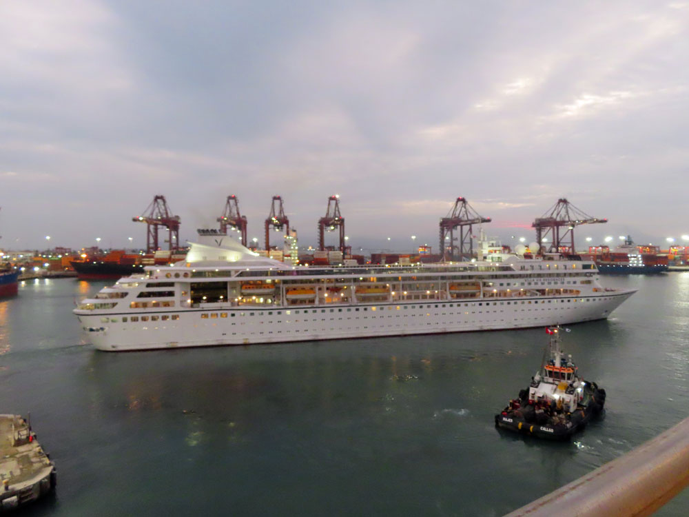 Friday, January 3. Lima the port of Callao I woke up feeling much better and we had breakfast in the marquee although the service was abysmal. The port for Lima is Callo, which is a suburb of Lima. It is a commercial port and has no gentility for cruise ships. There was a 40 minute shuttle to Miraflores if you wanted to do you own thing. You could not walk to the port entrance, but had to take their shuttle bus. And disembarkation was again to a public square with no facilities, not even a Silversea representative