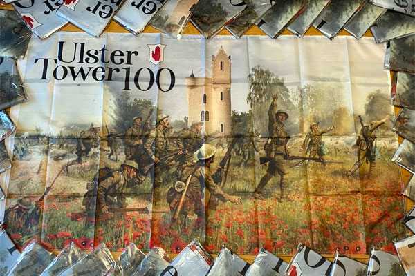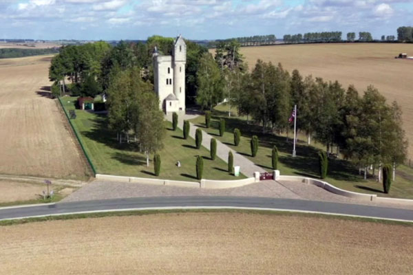 The Ulster Tower in Thiepval is Northern Ireland's National War Memorial. It was one of the first memorials to be erected on the Western Front and commemorates the men of the 36th (Ulster) Division and all those from Ulster who served in the First World War. The memorial was officially opened on 19 November 1921 and is a very close copy of Helen's Tower which stands in the grounds of the Clandeboye Estate, near Bangor, County Down, Northern Ireland. Many of the men of the Ulster Division trained in the estate before moving to England and then France early in 1916. The Tower (plus a small cafe nearby) is staffed by members of the Somme Association, which is based in Belfast.