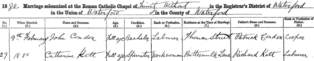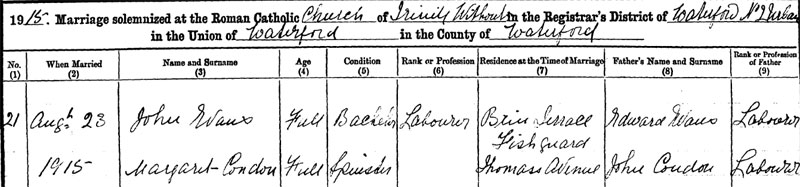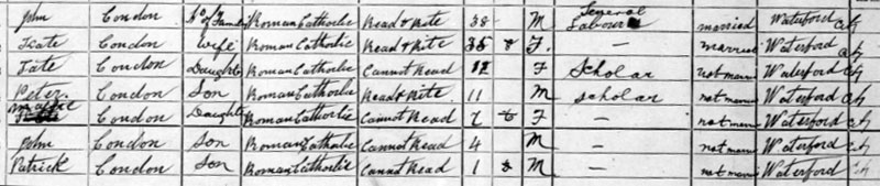 1911 census at Wheelbarrow Lane, Waterford