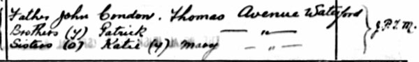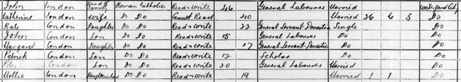 1901 census at 12 Jenkins Lane, Waterford City,