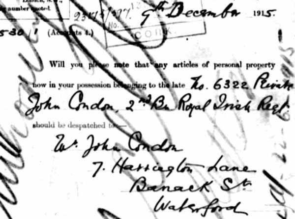 1913 Oct 24 Enlisted in Royal Irish Regt Special Reserve. He gave his dob as 24 Oct 1895
