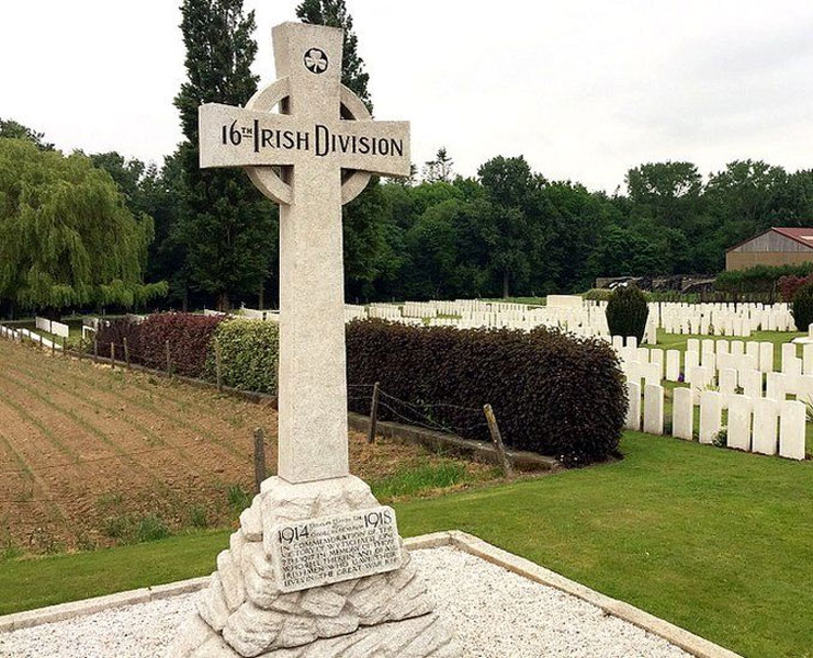 In October 1919 his widow Eleanor visited the grave and was pleased with how it had been kept by the Sisters. When the War Graves Commission started to concentrate burials in the area they wrote to her asking for her permission to move him. Eleanor requested that his body be left where it lay in the care of the nuns of Locre. His detached 'lonely grave' came to be emblematic in the subsequent political passage of events in Ireland in the 20th Century of the dislocation and ambiguity that the Irish nation felt for its sons who had chosen to fight in the conflict.