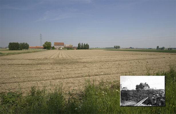 Mouse Trap Farm was rebuilt after the war. It is now a pig farm. From its long laneway you can see the twin spires of the Cloth Hall and the cathedral at Ypres. It was so near and yet so far for the Germans. Ypres became the British Verdun. It would not be taken at any cost even if that cost turned out to be nearly 200,000 British and Irish lives.