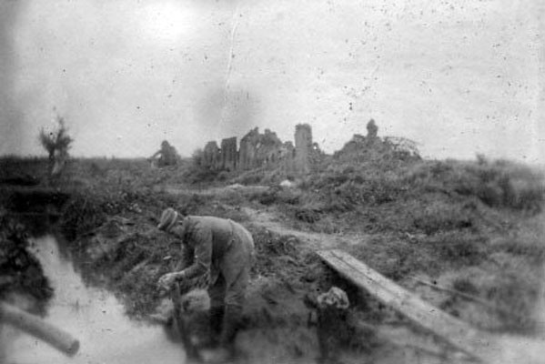 16th (Irish) Division found that their attack against Wijtschate was made relatively simple by the mine at Maedelstede Farm and the twin mines at Petit Bois, which broke any resistance. The village like Mesen had been heavily fortified by the Germans, but a heavy bombardment on 3rd June had battered the defences.