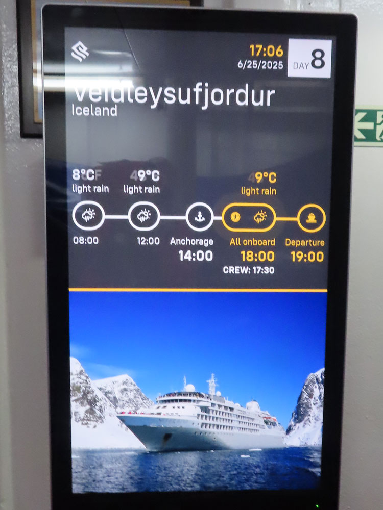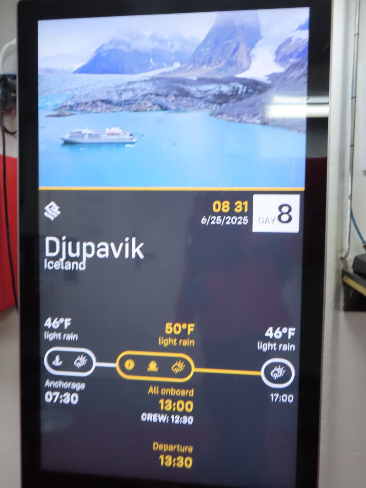 Once back aboard we had some bread and cheese in the cabin with a cup of coffee before Werner’s briefing at 6:15 pm.
