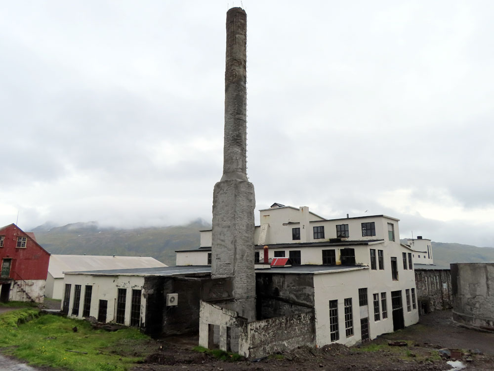 The new factory was built, and at 90 meters in length it was the largest concrete building in Iceland and one of the largest in Europe. There were no roads to Djupavik so all supplies arrived by ship. Despite the harsh conditions, the construction was completed within the span of just one year and the factory was operational by July 1935. It was one of 12 new herring oil and meal factories in Iceland. However, the Djupavik factory was unique. It was the first fully automated fish factory in Europe, with conveyor belts running from dock to basement storage rooms, then to coal-fired steam cookers, oil-extraction presses, coal-fired dryers, and meal grinders. Powerful electric fans then blew the hot fish meal through ducts that passed outside the factory for cooling and finally to chutes in the upper level where 100 kg meal bags were filled for transport. Electricity was generated by four German-built diesel engines salvaged from submarines and an Icelandic guard ship. The 60-tonne boiler used to generate steam for cooking was also salvaged from a ship. Initial worries that the catches would not meet requirements proved unfounded and during its early years the enterprise boomed, bringing improved financial status and living standards to the whole region. Eventually the the factory ceased operations in 1954. Then it 1984 it was bought by the present owner, who used one of the buildings as a hotel, and the old factory as a tourist attraction