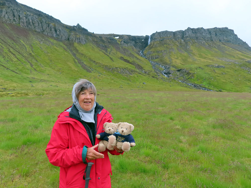 We were back on the ship soon after noon in time for lunch . Then a siesta for an hour before a coffee in the cabin at 4 pm we went on a Zodiac cruise round Veidleysufjordur in very calm conditions but with little to be seen other than a few birds and one or two seals, but I actually saw nothing.rist, playing and singing.