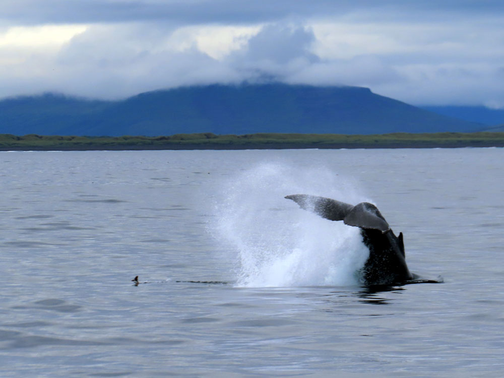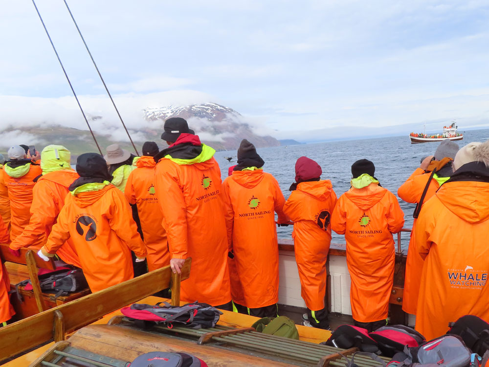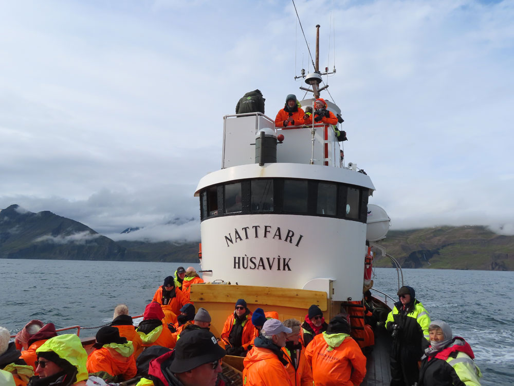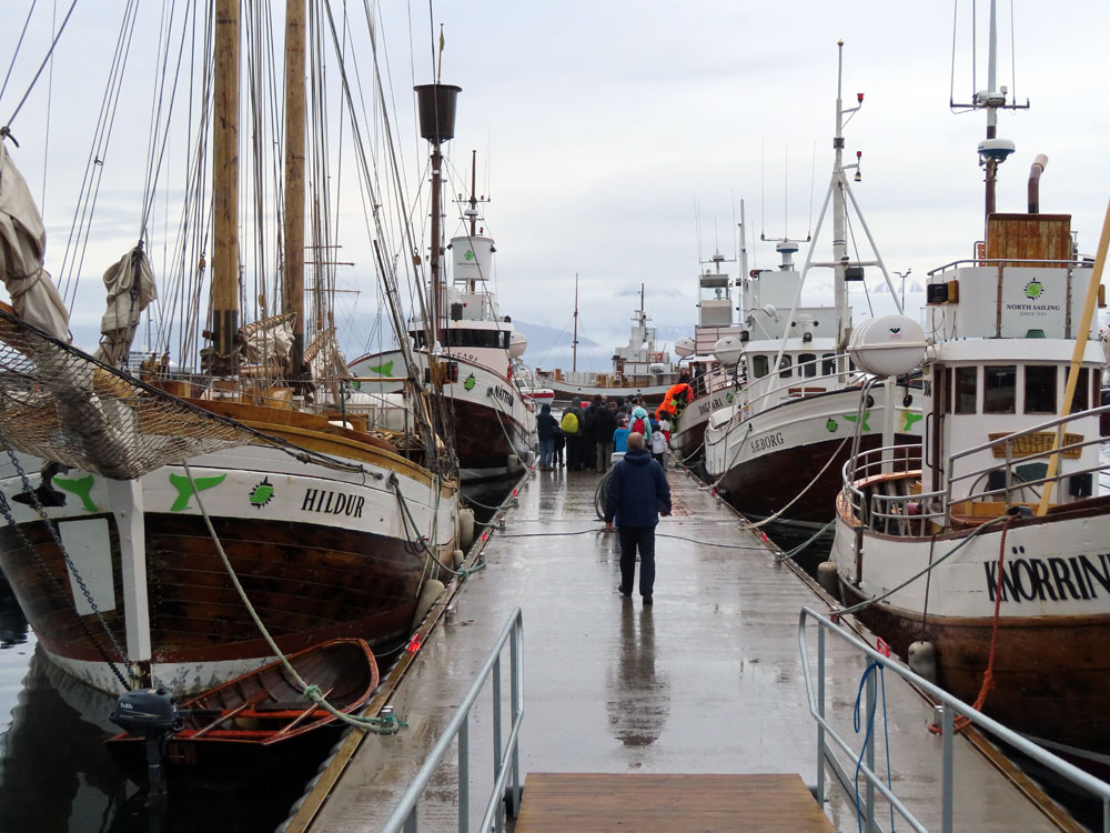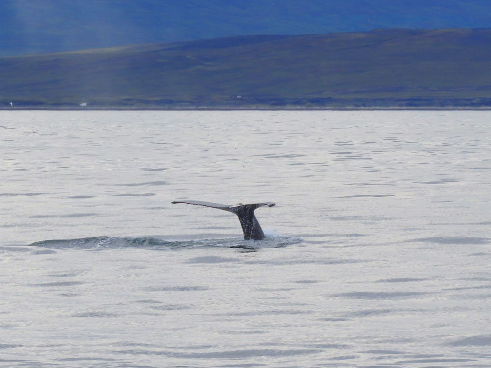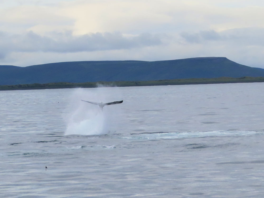 We went off at 8:15 am for a whale watching tour. Once ashore it was a 10 minute walk to a different part of the harbour to find our vessel and here we were kept waiting for 15 minutes or so in the light rain. Once the 80 of us were aboard this whale boat, we were provided with dry suits to keep us warm and then a southwesters which meant that we could hardly walk, we were so bulky. Several whales were sighted and people in general seemed contented with the tour.