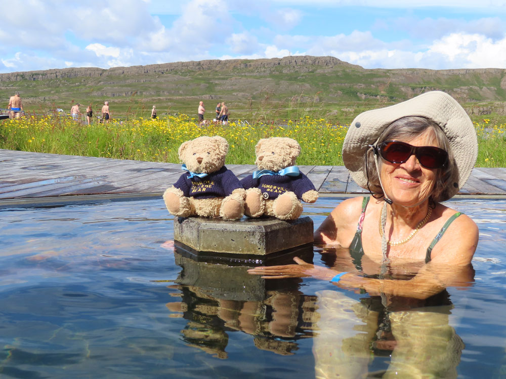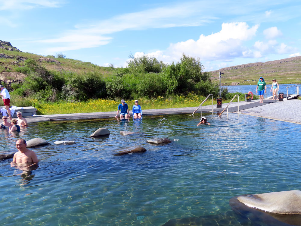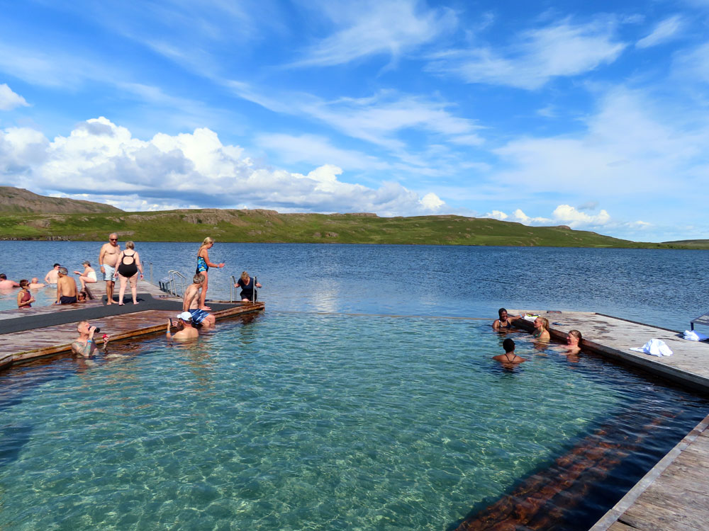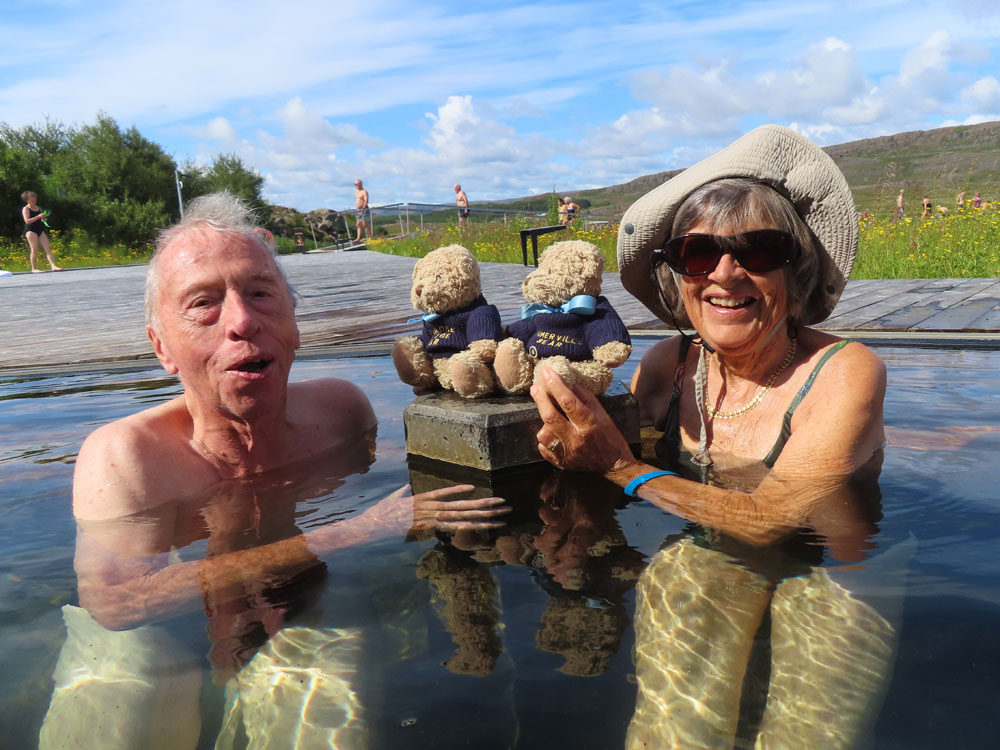 There were four pools two of them at about 35° and then one at 41 and one at 43 we enjoyed the first for some time and had a delicious avocado and ginger shake and a yogurt shake there which turned out to be very reasonably priced just over €5 each. Then we progressed to the other pools and David even plunged into the lake at 10°, no mean feat but then his feet suffered as a result.